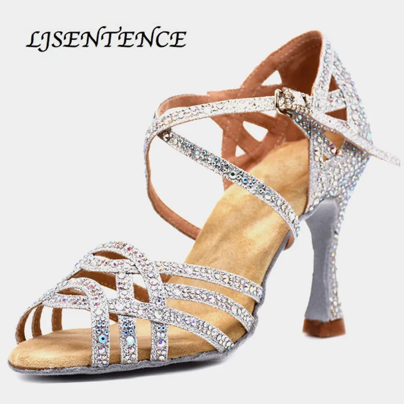 Silver Shoes For Ballroom Dancing Woman Flash Cloth Collocation Shine Rhinestone Latin Dance Shoes