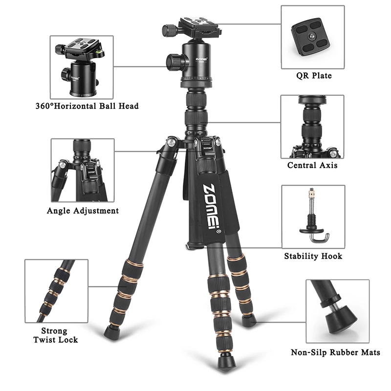 HIGH QUALITY ZOMEI Z669C Carbon Fiber Professional Tripod Lightweight Travel Monopod Ball Head For DSLR Photogra